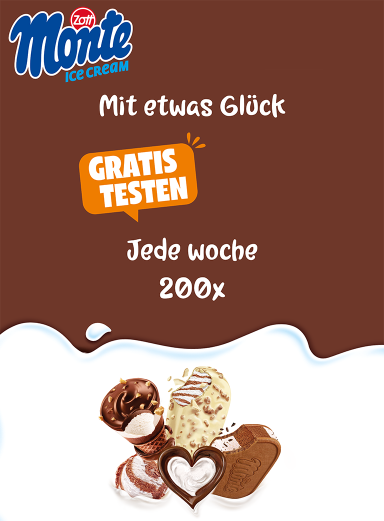 Pro Haushalt in Deutschland ist im Aktionszeitraum maximal eine Teilnahme und maximal eine Erstattung für ein Monte-Eis-Produkt möglich.
